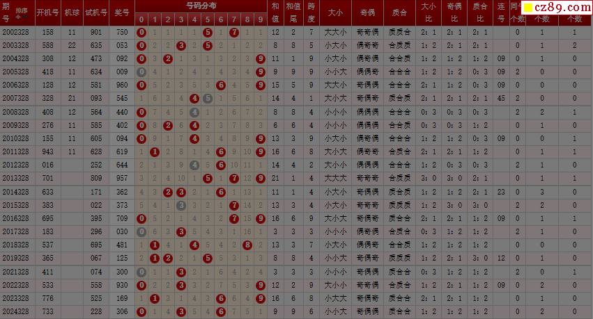 第328期福彩3D历史同期对比